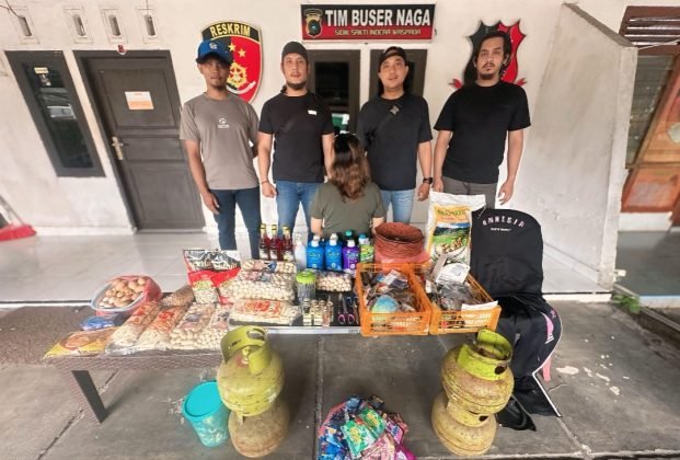 Selain mengamankan pelaku, petugas turut menyita sejumlah barang bukti. Di antaranya pakaian yang digunakan saat beraksi berupa hoodie dan celana hitam, empat tabung gas 3 kilogram, satu karung beras 10 kilogram beserta minyak goreng, lima lusin piring plastik, berbagai aksesoris wanita seperti skincare, gincu, sisir, dan ikat rambut, sepuluh buah pulpen, serta empat buah kabel charger.
