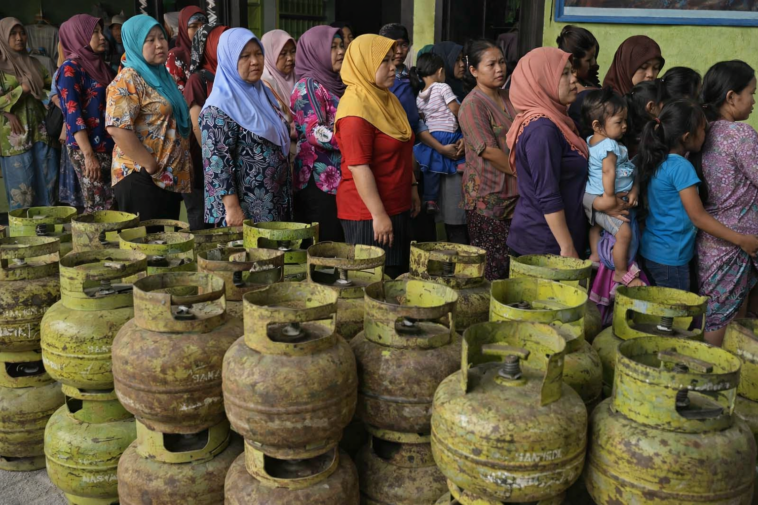 Ilustrasi antrean warga membeli LPG 3 kilogram di tengah keterbatasan pasokan.