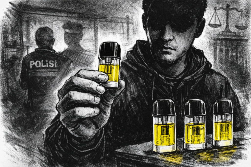 Hasil pemeriksaan laboratorium menyatakan cairan dalam 80 unit cartridge pod vape tersebut positif mengandung MDMA (Narkotika Golongan I bukan tanaman) dan Etomidate (Narkotika Golongan II) dengan total volume mencapai 140 mililiter.