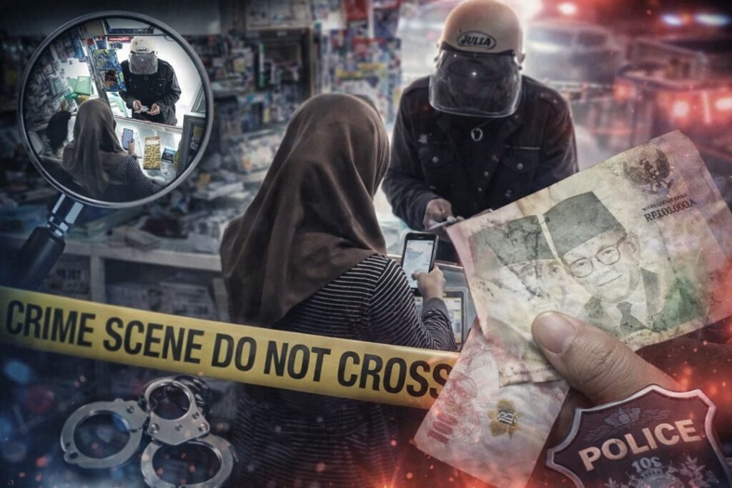 Dari rekaman kamera CCTV, pemilik konter melihat diduga pelaku sempat membolak-balikkan uang sebelum menyerahkannya kepada penjaga konter.