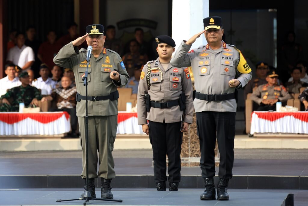 Gubernur Hidayat Arsani, saat membacakan amanat Kapolri, menekankan pentingnya sinergitas, koordinasi, serta kesiapsiagaan seluruh personel guna menjamin keamanan, ketertiban, serta kelancaran arus mudik maupun arus balik masyarakat.