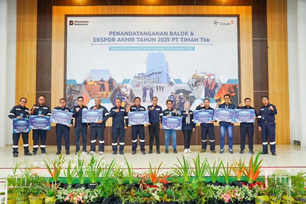 BANGKA BARAT — Menjelang tutup tahun 2025, PT TIMAH Tbk menggelar Penandatanganan Balok dan Ekspor Akhir Tahun 2025. Kegiatan ini dilaksanakan secara hybrid dari Division Processing & Refinery Mentok, Kabupaten Bangka Barat, Provinsi Kepulauan Bangka Belitung, serta dari Kundur, Provinsi Kepulauan Riau, Selasa (30/12/2025).