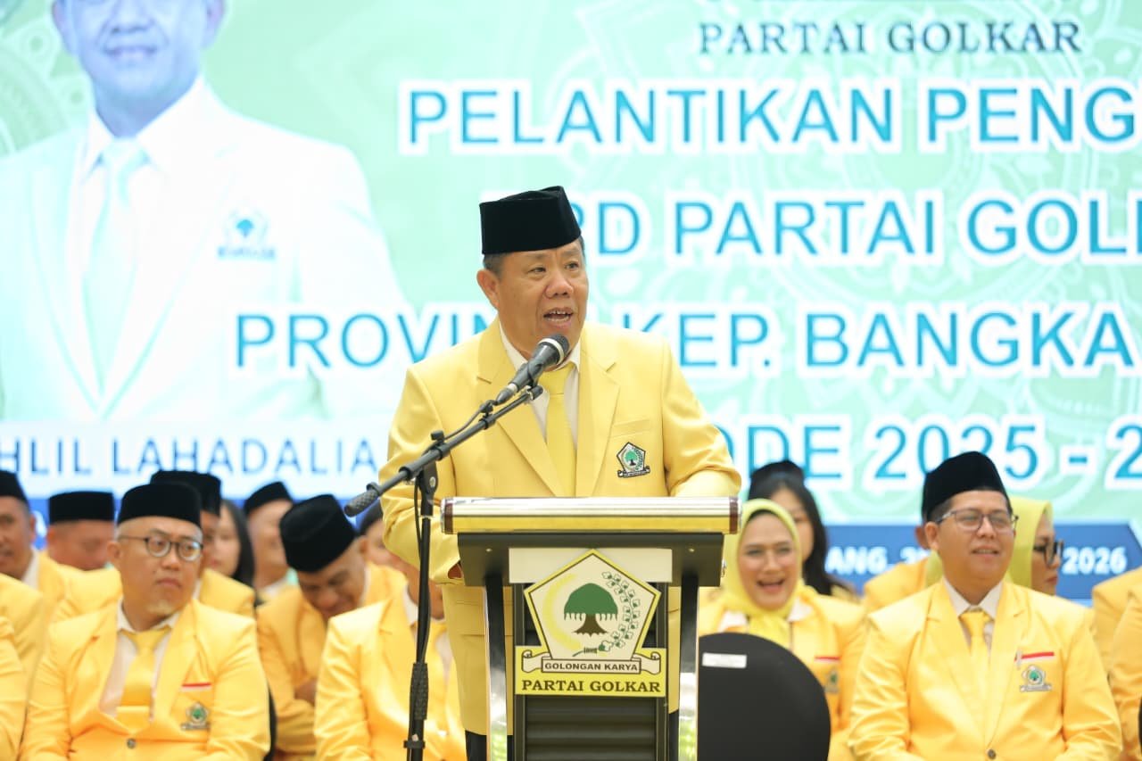 PANGKALPINANG – Ketua Umum Partai Golongan Karya (Golkar), Bahlil Lahadalia, secara resmi melantik Hidayat Arsani sebagai Ketua Dewan Pimpinan Daerah (DPD) I Partai Golkar Provinsi Kepulauan Bangka Belitung (Babel) periode 2025–2030. Pelantikan tersebut berlangsung di Hotel Grand Aston Emidary, Pangkalpinang, Minggu (25/1/2026)