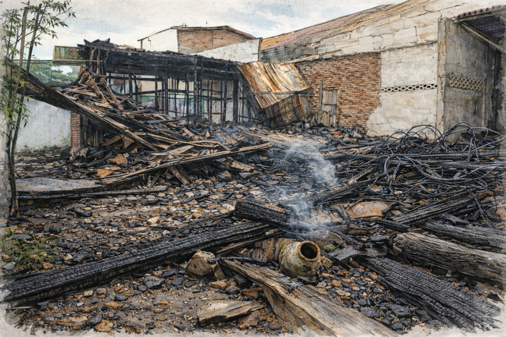 Perabotan rumah tangga, dokumen penting, serta barang-barang berharga dilaporkan ludes dilalap api. Petugas masih melakukan penyisiran untuk memastikan tidak ada titik api yang tersisa.