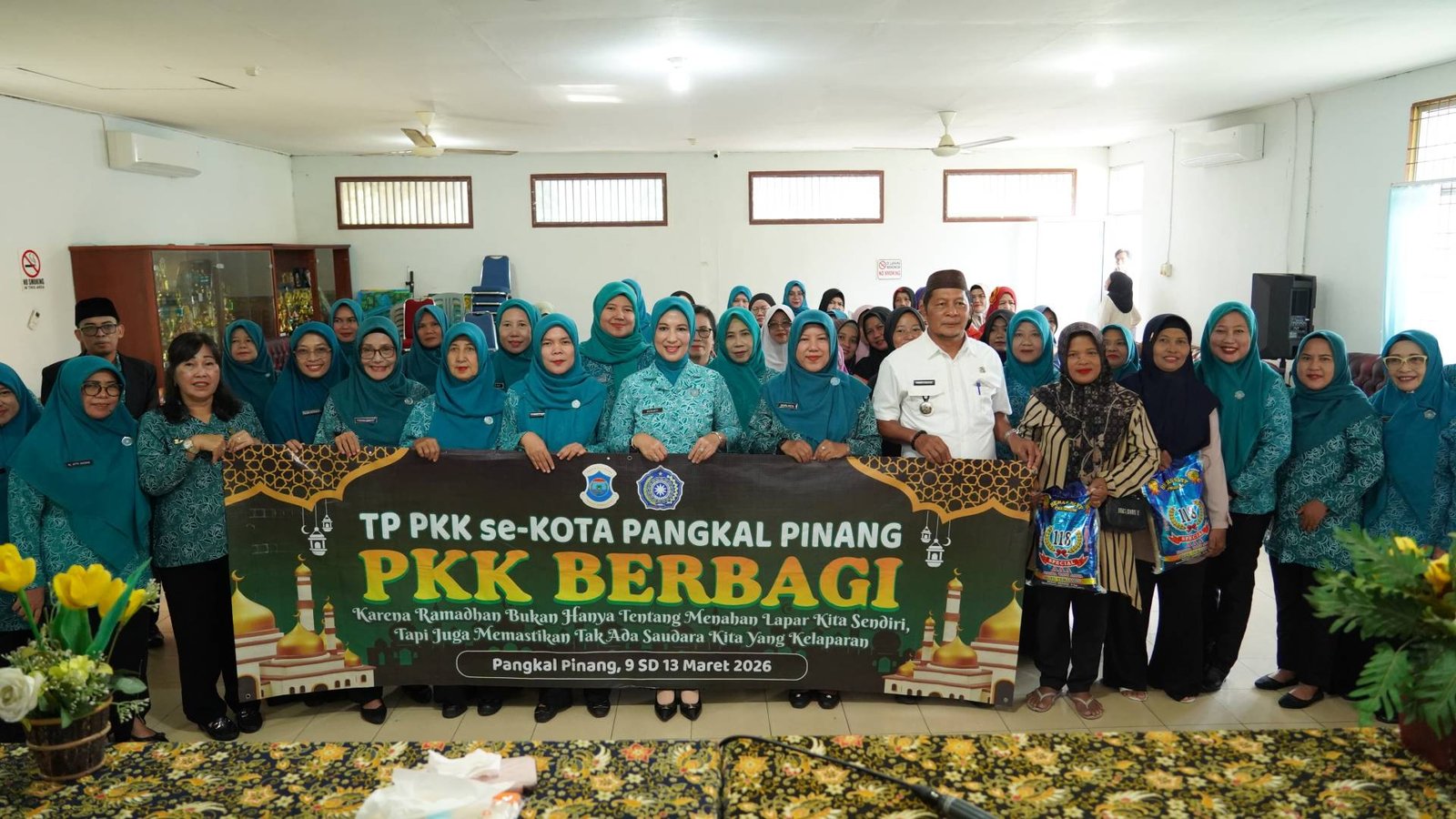 PANGKALPINANG – Tim Penggerak PKK Kota Pangkalpinang melaksanakan kegiatan bakti sosial bertajuk PKK Berbagi dengan menyalurkan bantuan beras kepada masyarakat di tujuh kecamatan di Kota Pangkalpinang selama bulan Ramadan.