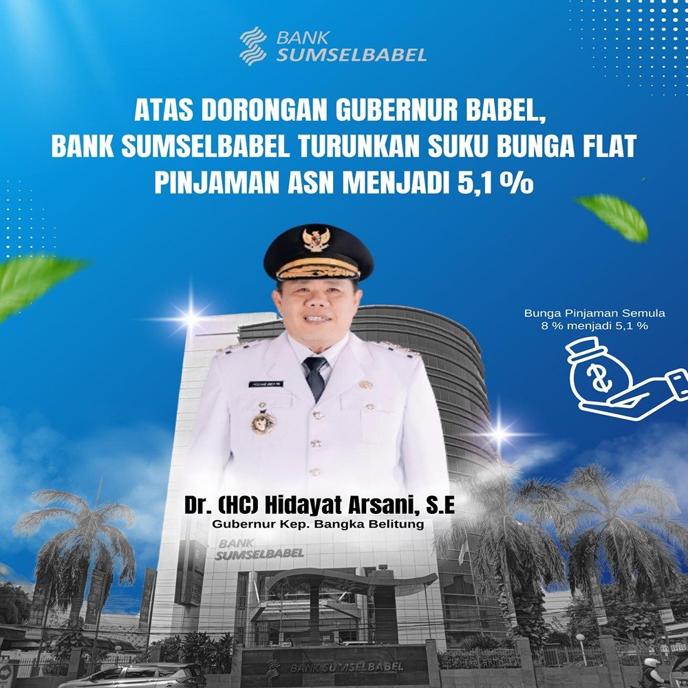 Pangkalpinang – Sebagai bentuk kepedulian terhadap kesejahteraan Aparatur Sipil Negara (ASN), Bank Sumsel Babel Cabang Pangkalpinang resmi menurunkan suku bunga flat pinjaman khusus ASN dari sebelumnya 8 persen menjadi hanya 5,1 persen. Kebijakan ini dijalankan atas dorongan langsung...