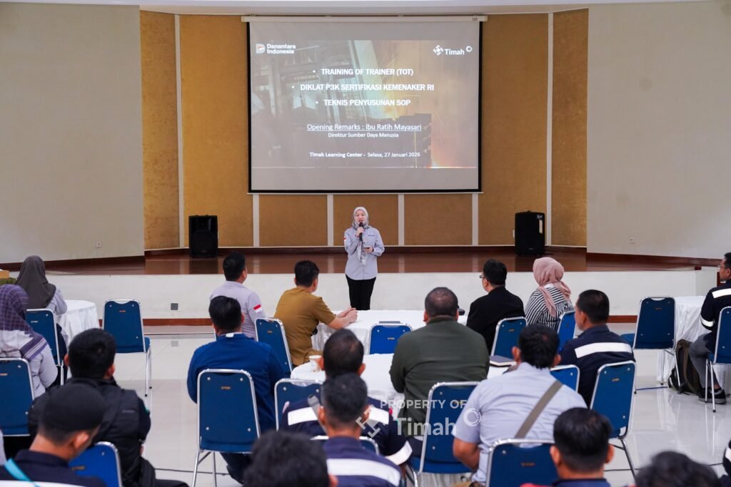 Pelatihan terpadu yang diikuti Karyawan PT TIMAH Tbk ini dibuka oleh Direktur SDM TIMAH Tbk, Ratih Mayasari dan turut dihadiri Kepala Dinas Tenaga Kerja Provinsi Kepulauan Bangka Belitung, Elius Gani, Direktur PT Mitra Sinergi Internasional Rini Apriliani, serta tim instruktur dari PT Fresh Galang Mandiri yang berlangsung di Pemali Learning Center PT TIMAH Tbk, Selasa (27/1/2026).